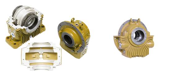 軸承殼體是帶支架的,并由灰口鐵制造而成,具有高強度的散熱性。殼體的球形瓦支架確保組裝過程中,簡單調整和裝載能夠平穩的達到殼體底部。因此該外殼適用于最高負載需求。外殼兩側都有連接管螺紋,用于溫度和油位監控以及排流和注油。如果需要,可通過簡單的后續處理在殼體安裝油冷卻器和振蕩測定器。